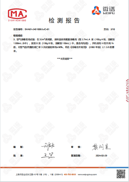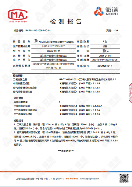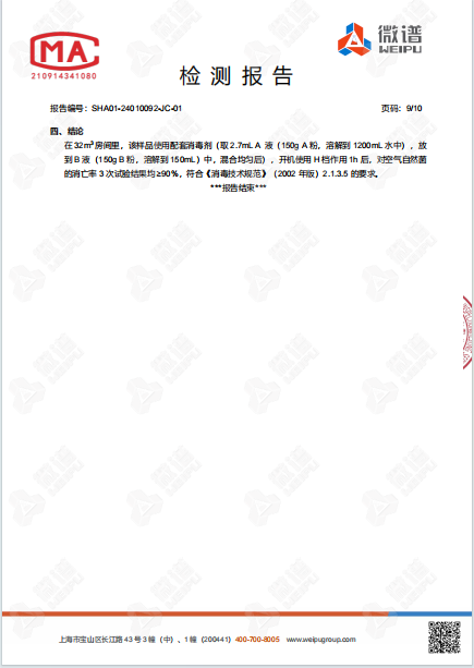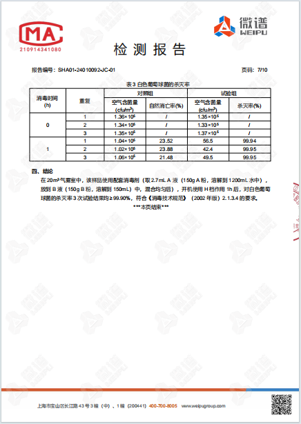 空氣消毒機(jī)檢測(cè)報(bào)告